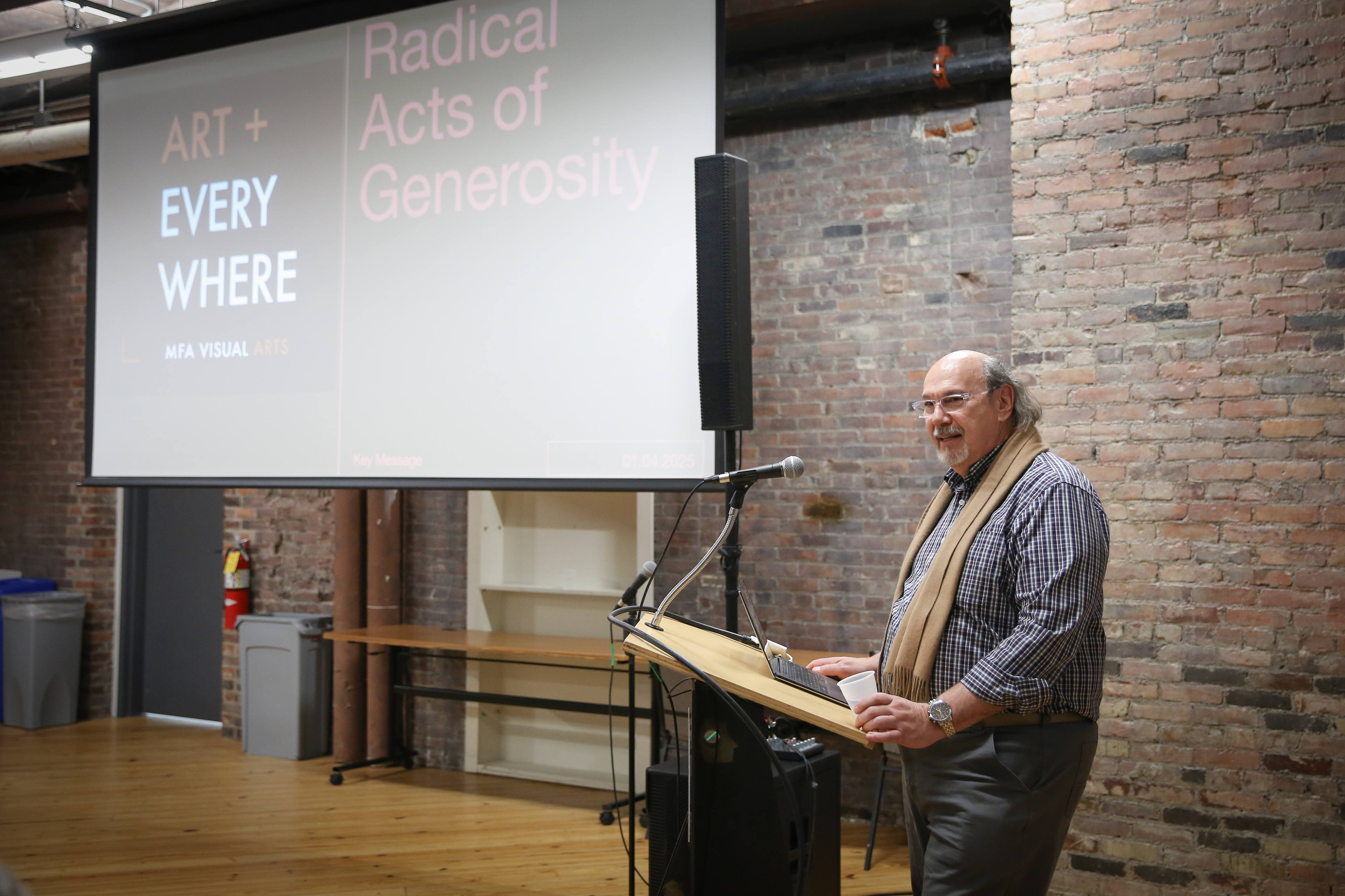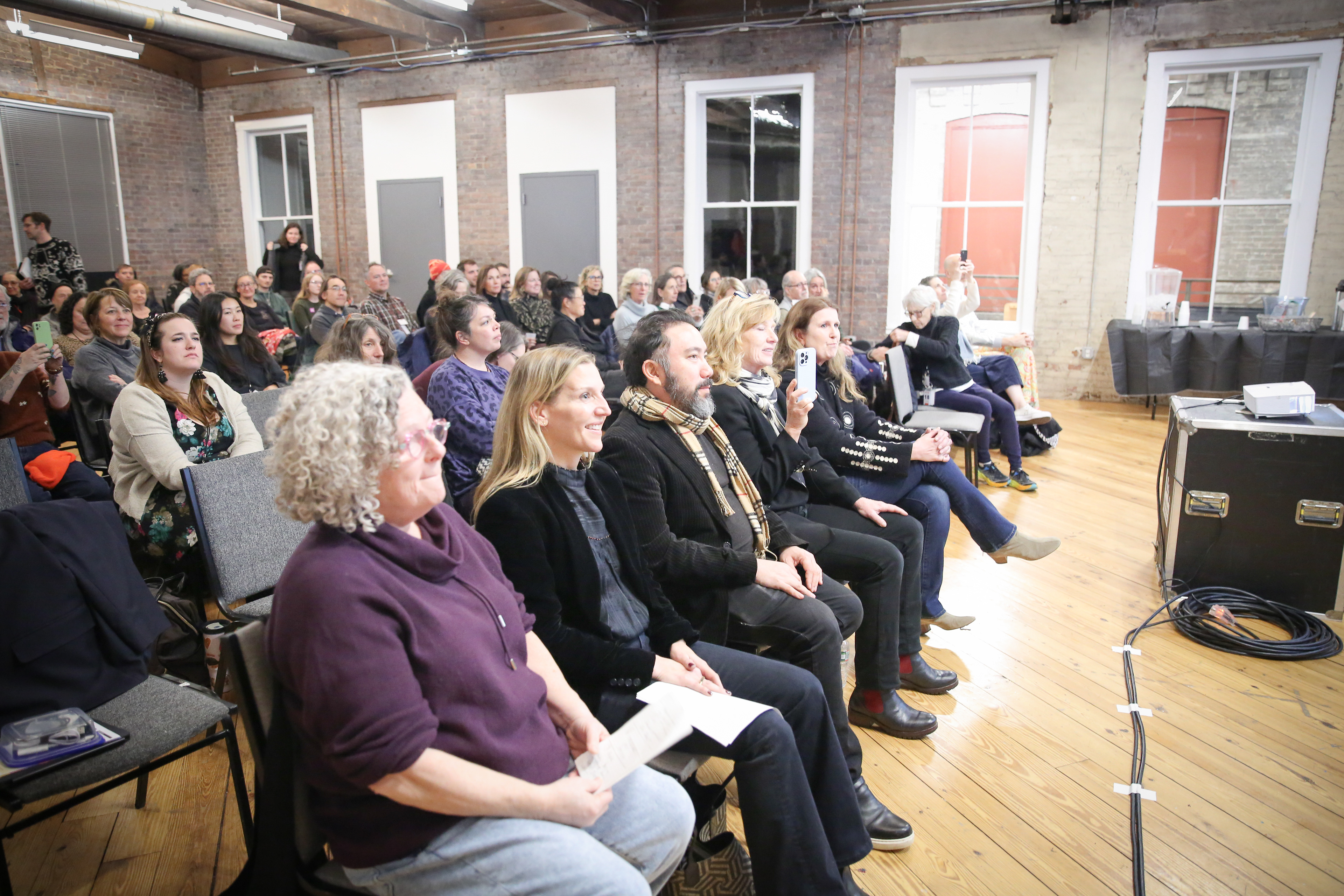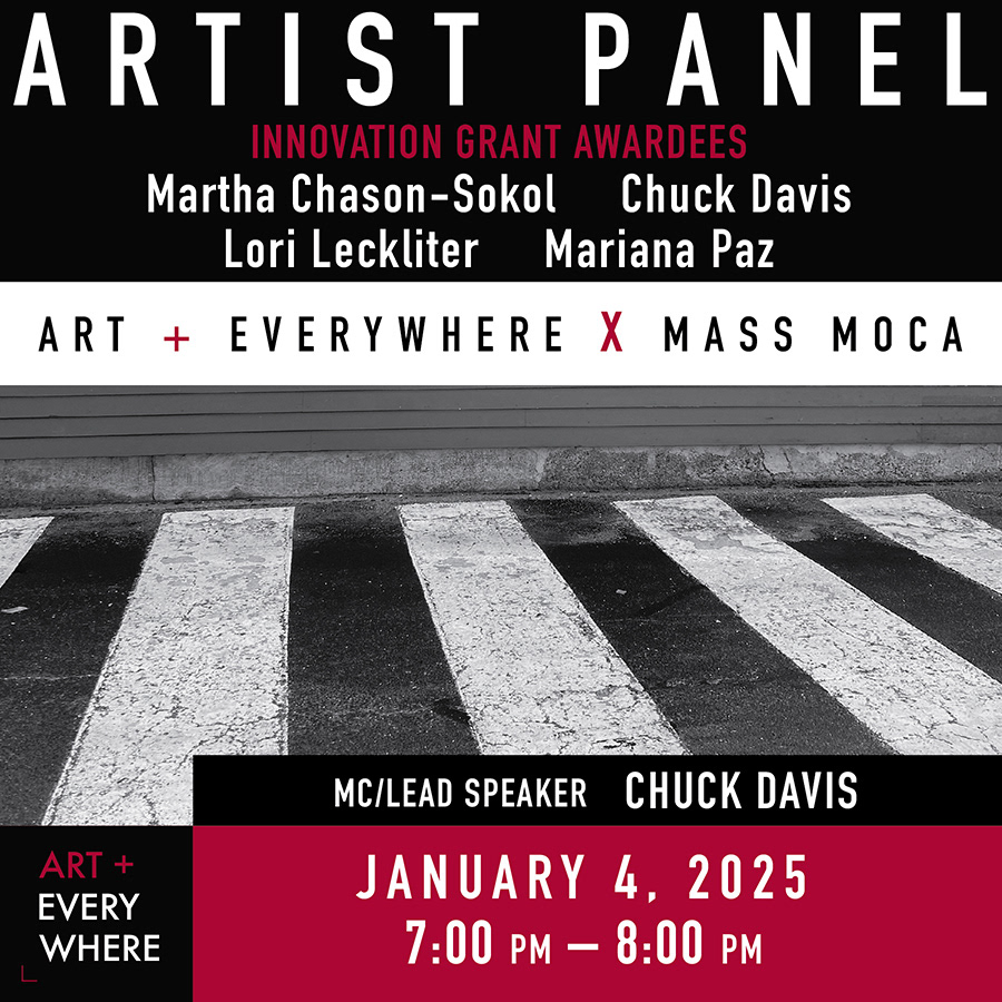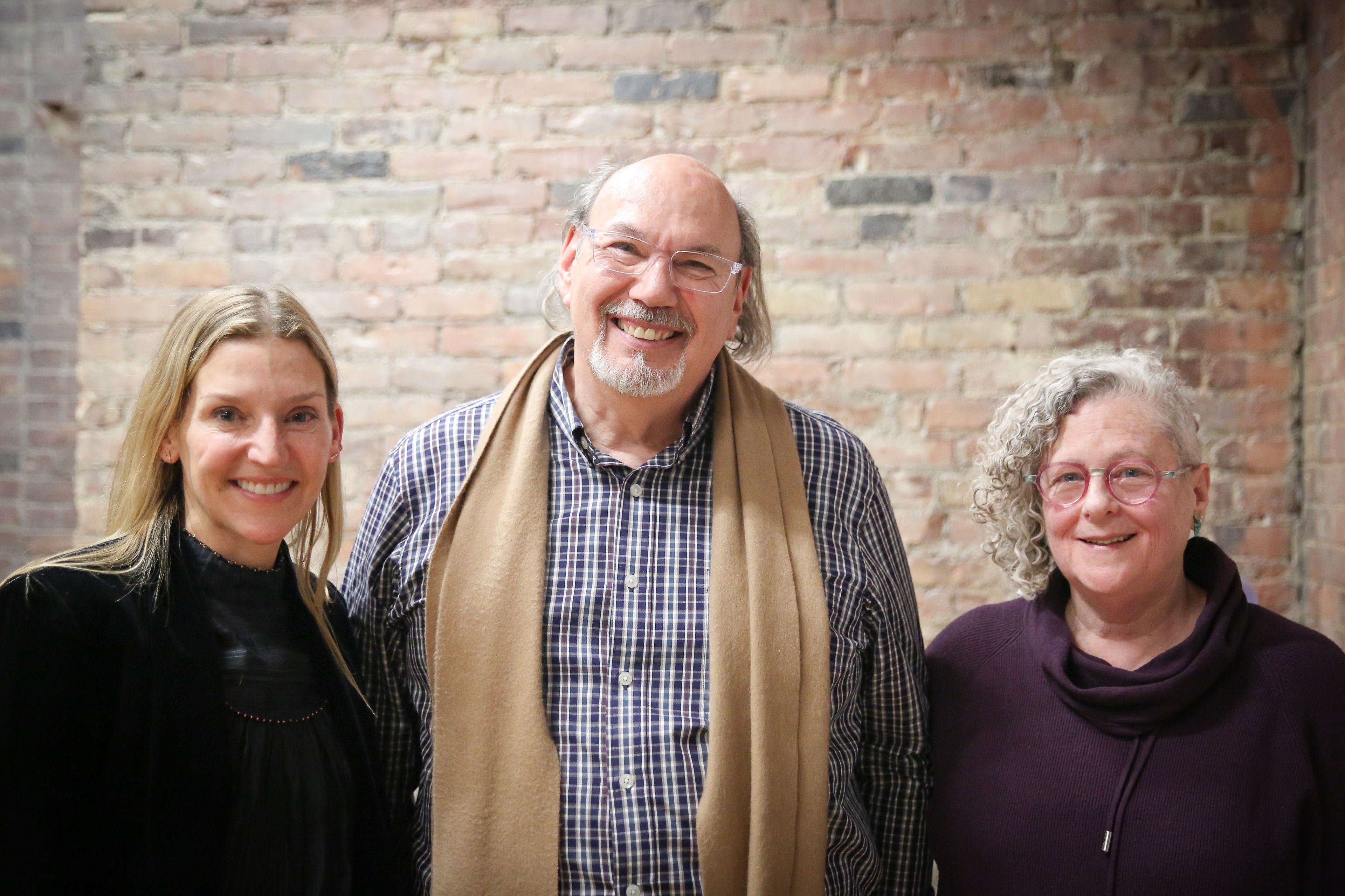 Art+Everywhere 2024 Innovation Grant Winners give an artist talk on their year long work developing their pilot programs. From left to right; Lori Lecklighter, Chuck Davis, and Martha Chason Sokol.