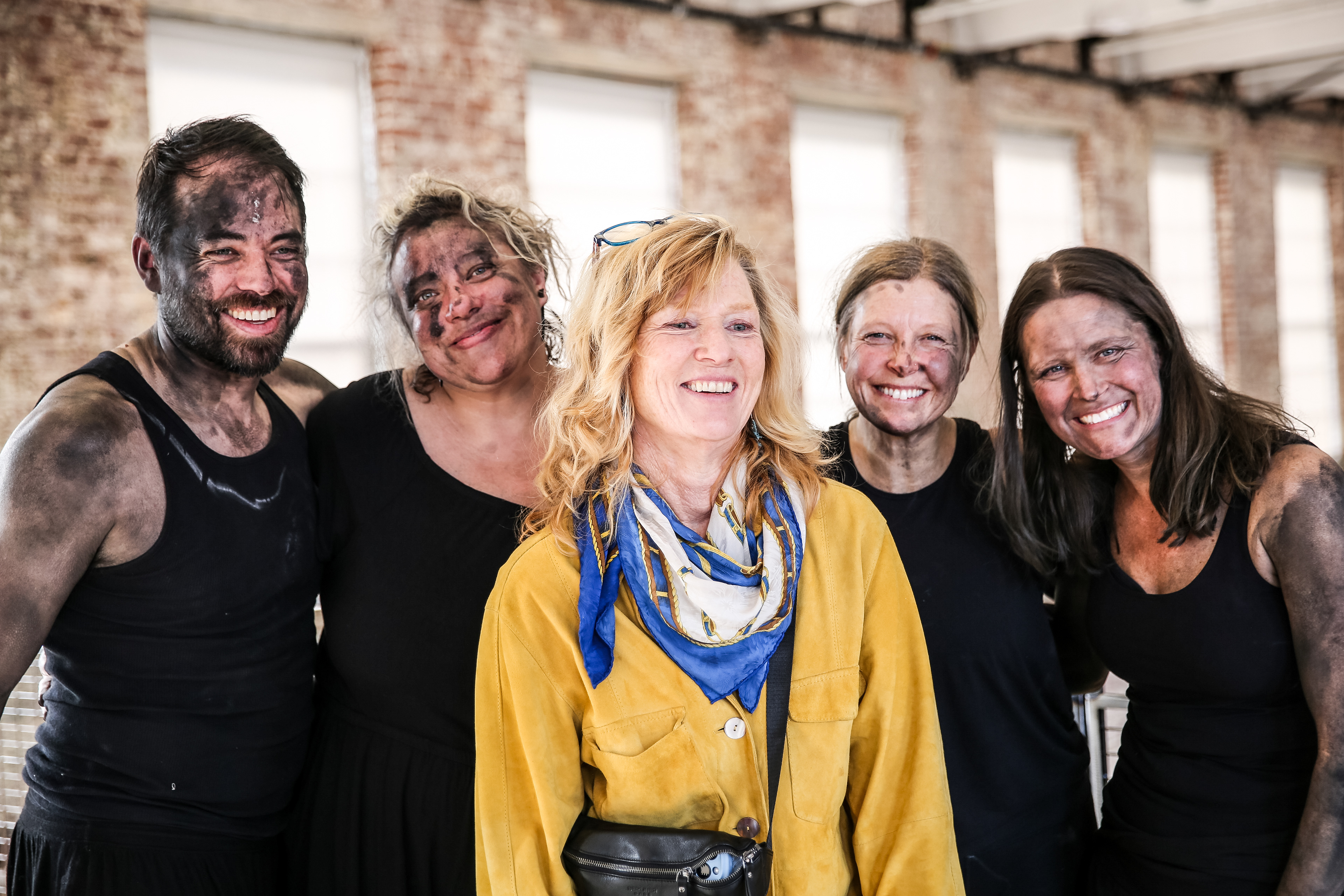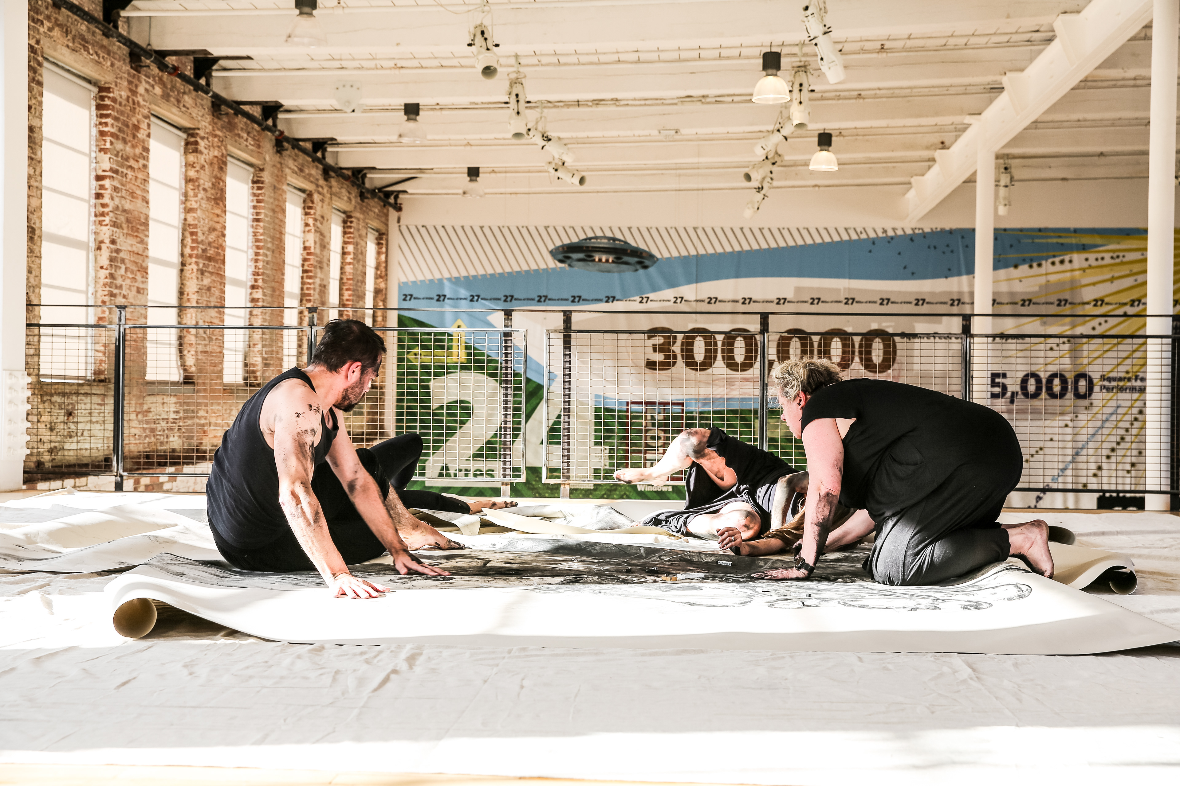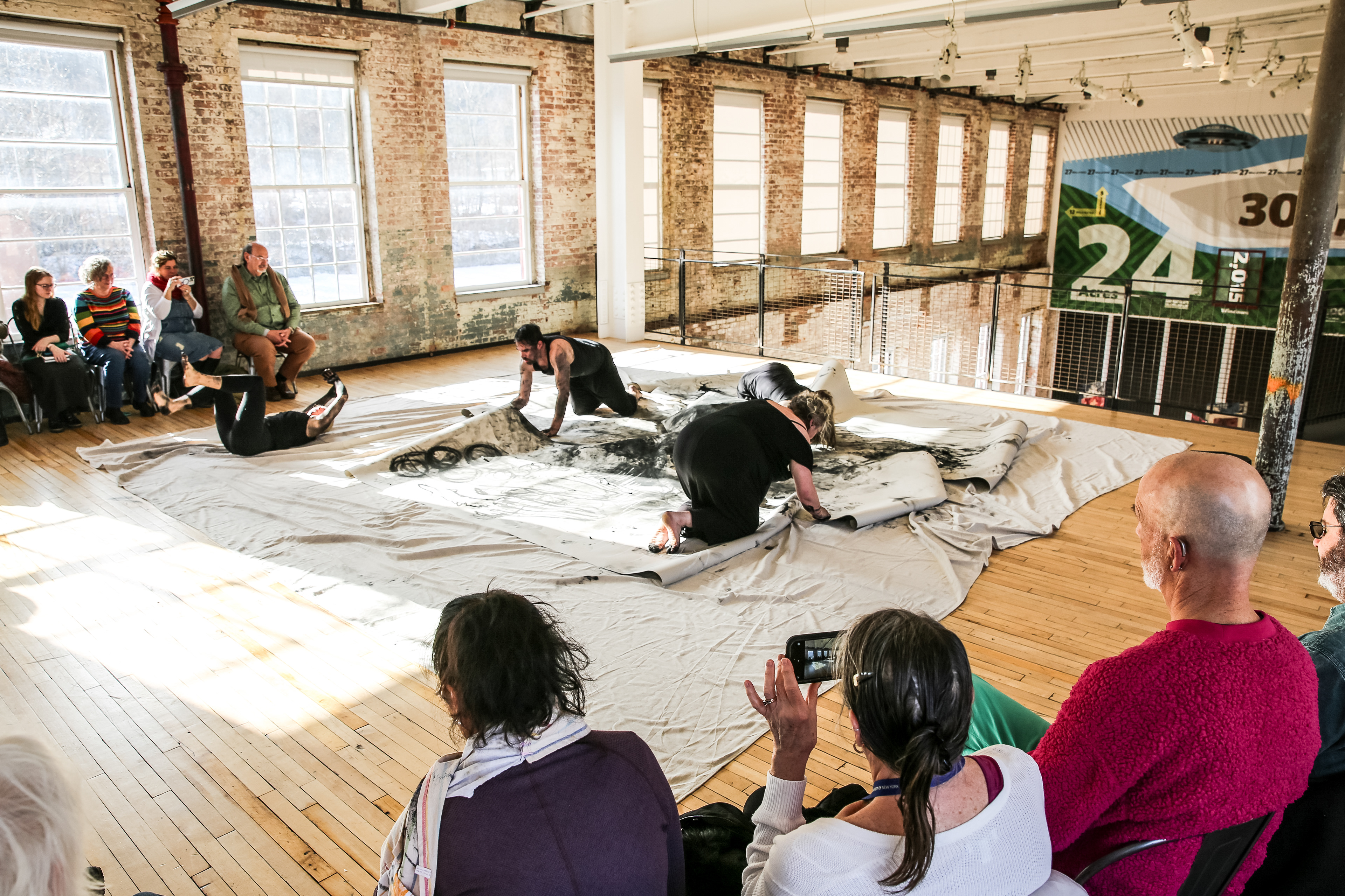 Performative charcoal drawing and dance by Belle Hooks and friends.